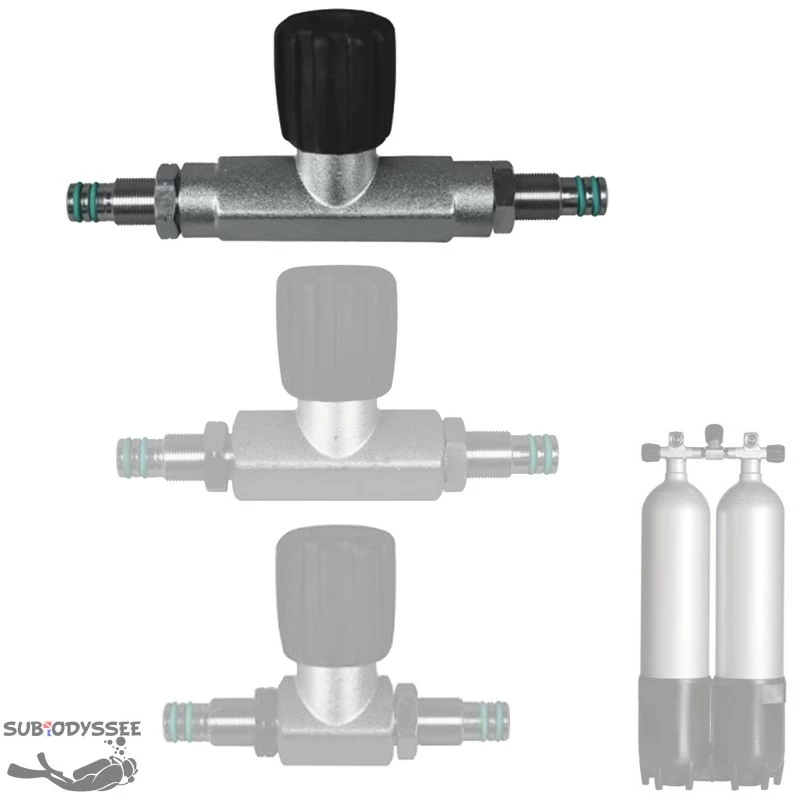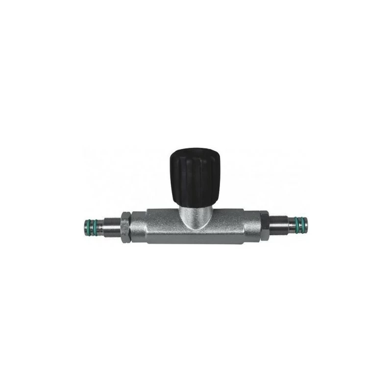 Barre centrale de liaison avec robinet central d’isolation pour bi-bouteilles de plongée Ø 204 mm :