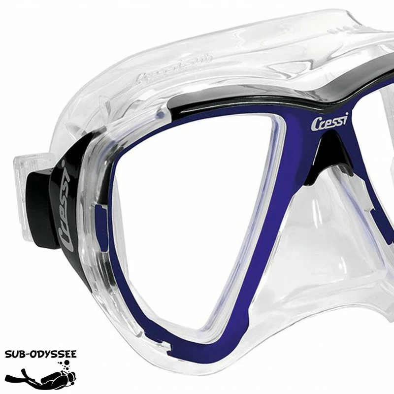 – CRESSI est la marque qui a inventĂ© la forme en goutte d’eau inversĂ©e, augmentant de ce fait la vision du plongeur dans toutes les directions.