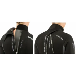 – La fermeture arrière YKK® possède le système d’Ă©tanchĂ©itĂ© Acquastop® avec nĂ©oprène lisse interne sous la fermeture Ă glissière pour minimiser l’infiltration d’eau. Le rabat de fermeture est maintenant beaucoup plus large & la rĂ©gion de la nuque se prolonge pour Ă©viter les infiltrations lorsque le cou est inclinĂ© sous l’eau.