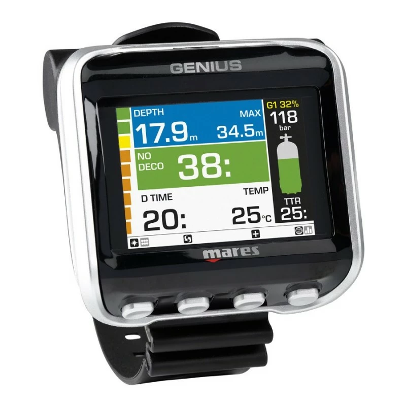 – Algorithme ZH-L16C avec facteurs de gradient & prédiction multi gaz compatible nitrox & trimix, jusqu‘à 3 gaz.