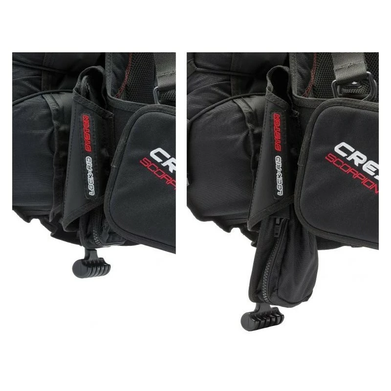 Poches à Lest : Système de poids intégré Cressi Flat-Lock-Aid en position verticale arrière