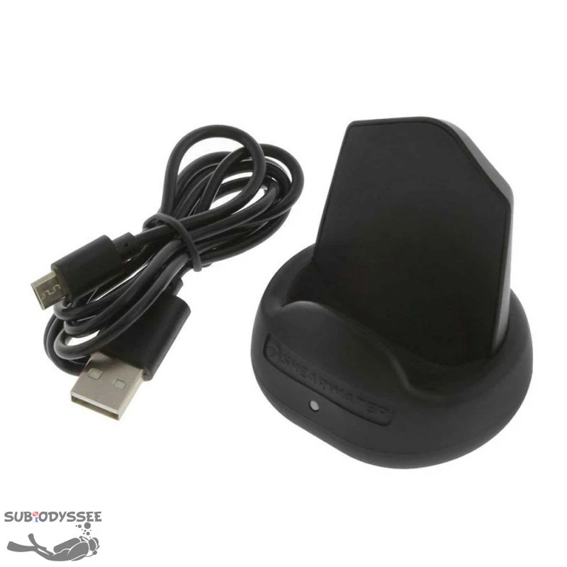 L’ordinateur Shearwater TERIC utilise une batterie rechargeable sans fil. Il est livrĂ© avec un chargeur Ă induction sans fil.
